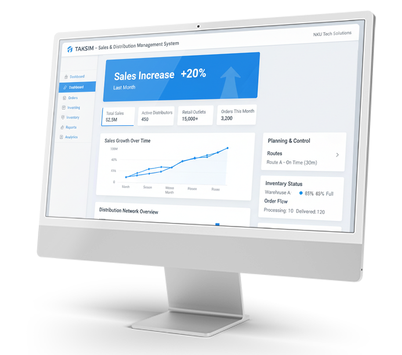 Taksim is a cloud-based Sales and Distribution solution for distributors. It provides leading insights on the performance of each location, product line, brand, and category to make better decisions at the right time. It has been adopted by many distributors to make their sales force and field execution smarter and wiser. We provide a visual dashboard that is always on with the most important insights available to you from the click of a button.